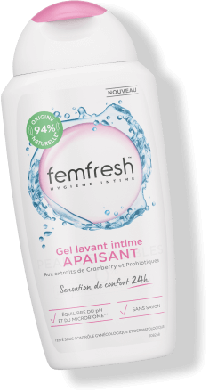 * Le pH de la zone intime est différent de celui du reste du corps. Les gels Femfresh sont proches du pH naturel de la zone intime pour aider à maintenir l’équilibre naturel du microbiome de la peau